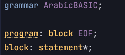 In the middle of writing my interpreter for ArabicBASIC, I was testing the expression grammar. I accidentally forgot a parenthesis which gave me an expression like “LET A = ((2 + 3) * 4“. Notice how the parentheses are mismatched: the final one after the 4 is missing. This should have provoked an error, but magically it still executed and calculated the correct result. I panicked a little thinking that I had made a fundamental error in my grammar.